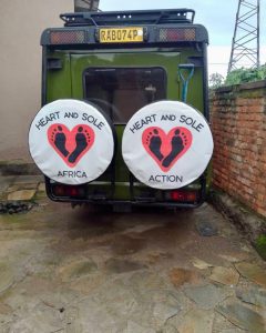 The HASA Green Machine has new Bling! These eye catching wheel covers were made by a local vendor, Public Secretarial in Rwanda.
